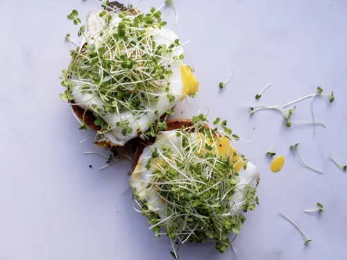 - Eggs/quiches/omelets – When using microgreens for these dishes, I recommend cutting them. They tend to become stringy after cooking, so giving them a quick chop will solve that. Add the microgreens on top of the finished omelet, or incorporate it into the egg mixture. Interested in a microgreen quiche recipe? Try our mini grow and dough microgreen quiche recipe